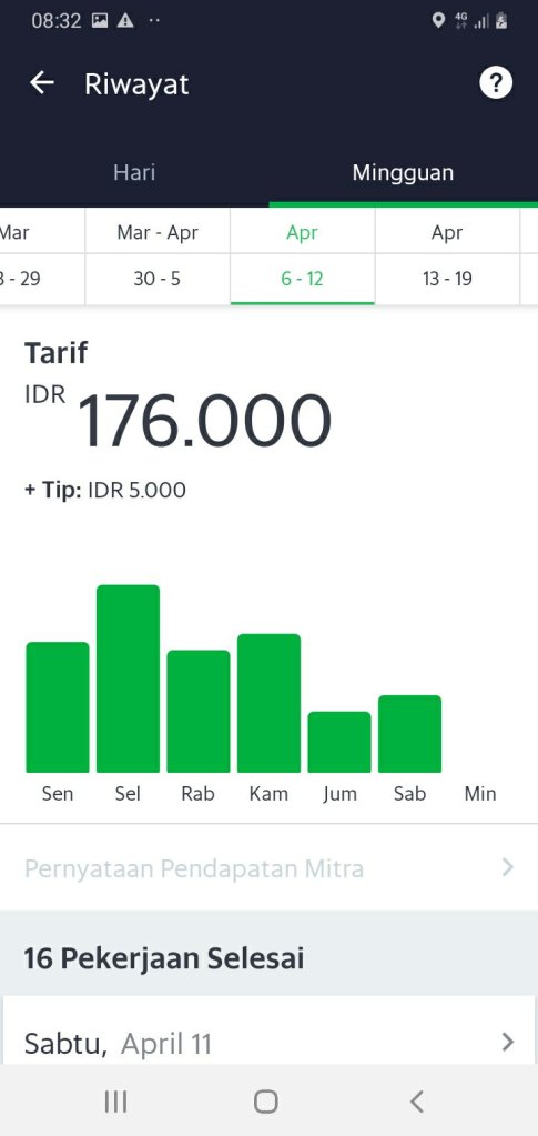 Sebelum pandemi covid 19 rata penghasilan ojol Grab Banyuwangi rata-rata dikisaran Rp 400.000-Rp 1.000.000 data ini didapat dari survey rata-rata anggota komunitas Grab kuda putih Banyuwangi yang memiliki 29 anggota.besaran penghasilan yang didapat sebelum covid 19 dibilang cukup untuk menghidupi kebutuhan keluarga dirumah.susahnya lapangan pekerjaan menjadikan driver onlinr menjadikan sumber utama untuk menafkahi keluarga dirumah.penghasilan tersebut digunakan untuk membiayai anak sekolah,belanja kebutuhan sehari-haru,dan membayar angsuran rumah maupun kendaraan.sehingga tidak dipungkiri untuk mendapat hasil yang memuaskan rata-rata driver online bekerja lebih dari 10jam perhari.